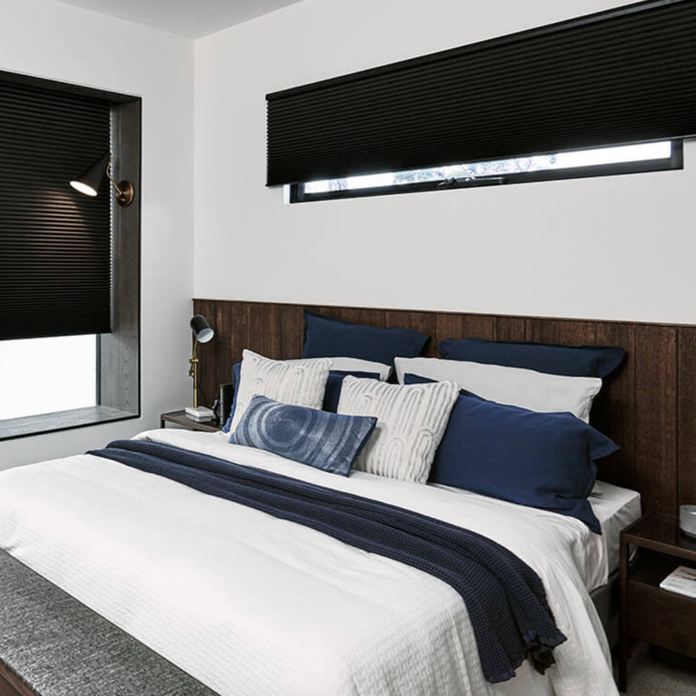 Why not get the best of both design and efficiency with our line of distinctive Honeycomb Blinds? This intuitive design provides an added layer of thermal protection to keep the cool air in during the summer or prevent heat loss during the winter. We’ll work with you to find just the right type of design and colour to match your decoration needs.