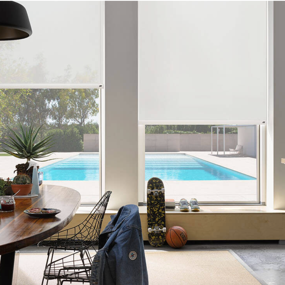 Roller blinds offer an excellent way to update any room in your home. Sleek and contemporary, these simple blinds look great without detracting from the rest of your decor. Choose from block out, light filtering or screens, with the option of allowing sunlight to enter your home or completely blocking it out, the choice is entirely up to you. The blinds are available with the standard chain option or motorisation, don’t hesitate to ask us about this convenient add-on to make the operation of your blinds even easier.