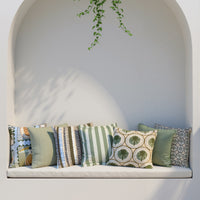 Bring a splash of retro charm to your outdoor space with the Zaab Vintage Palm Outdoor Cushion. Inspired by colourful holiday postcards and vintage palm prints.