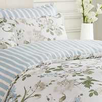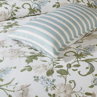 Improve the elegance of your home with the Rosalind Quilt Cover Set, where timeless charm meets modern comfort. The stunning large-scale floral print captures blooming buds intertwined with delicate scrolling leaves, evoking the peaceful essence of an English country garden. Dressed in a soothing seaspray colour, this quilt cover is made from 100% cotton sateen, ensuring a soft touch while providing warmth through all seasons. Ideal for any bedroom decor, Rosalind infuses a sense of serenity and style making it the perfect centrepiece for restful nights and peaceful mornings. Infuse your space with nature's beauty and let your bedroom blossom with exquisite floral artistry.