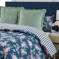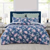 Delicately trailing blossoms embody a timeless charm, artfully merging traditional richness with a subtle hint of modern oriental aesthetics in the trailing vintage blossom quilt cover set. The thoughtfully designed stripe on the reverse not only adds versatility but also offers various styling possibilities for your bed. Crafted with keen attention to detail, this quilt cover set creates an elegant and tranquil ambiance, making it an ideal addition to your bedroom. The intricate floral pattern enhances its visual appeal, serving as a captivating focal point. Enjoy the harmonious blend of classic beauty and contemporary sophistication with the trailing vintage blossom quilt cover set, ensuring a stylish and welcoming bedroom retreat.